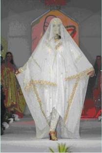 model displaying modern Kisa’a, unsown thawb worn by women only.