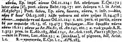 - The etymology of proskuneo (according to the scholarly standard reference)