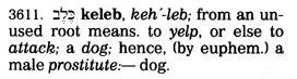 this one verse the lexeme keleb is always rendered as kuon in the LXX.